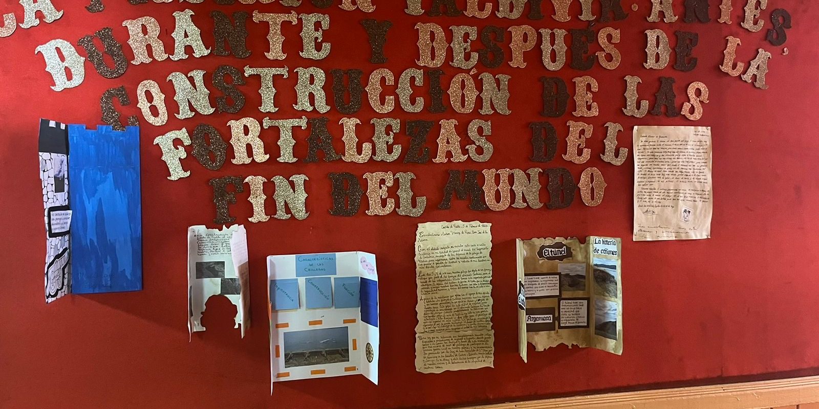 En el marco de la conmemoración del “Encuentro entre dos mundos” y a partir de la salida pedagógica al Castillo de Niebla, los estudiantes de 4 medio a cargo de las docentes Miss Paz Pérez y miss Karina Cárdenas, exponen sus trabajos en el diario mural del colegio: cartas y trípticos representando a distintos personajes de la época colonia y que tuvieron influencia en El Puerto de Valdivia.